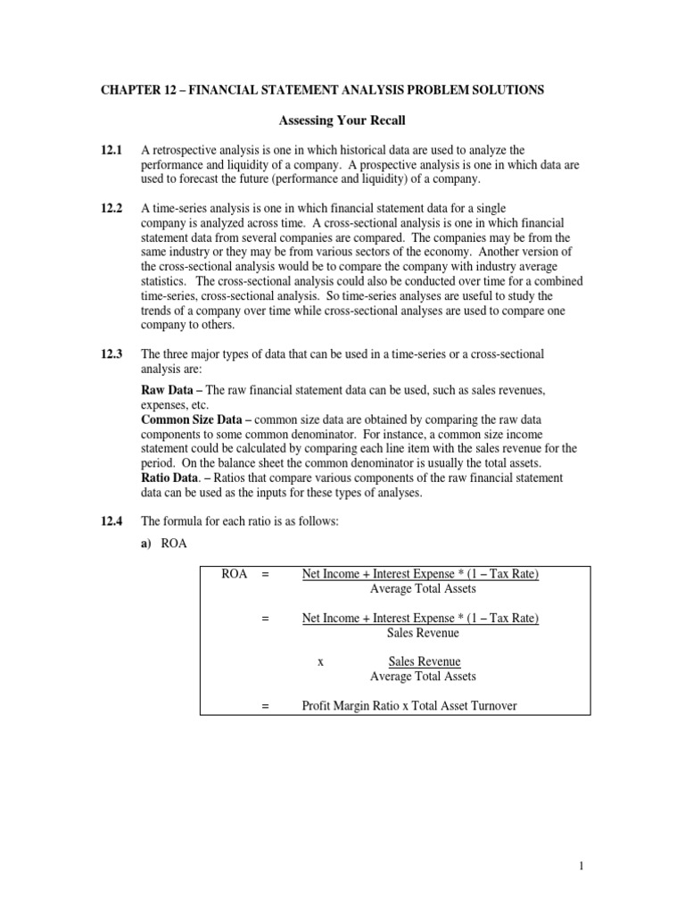 Solutions For Financial Analysis Problems Financial Statement Analysis Solutions Chapter 9 1 C Is Correct To Address This Question We Need To first Course Hero